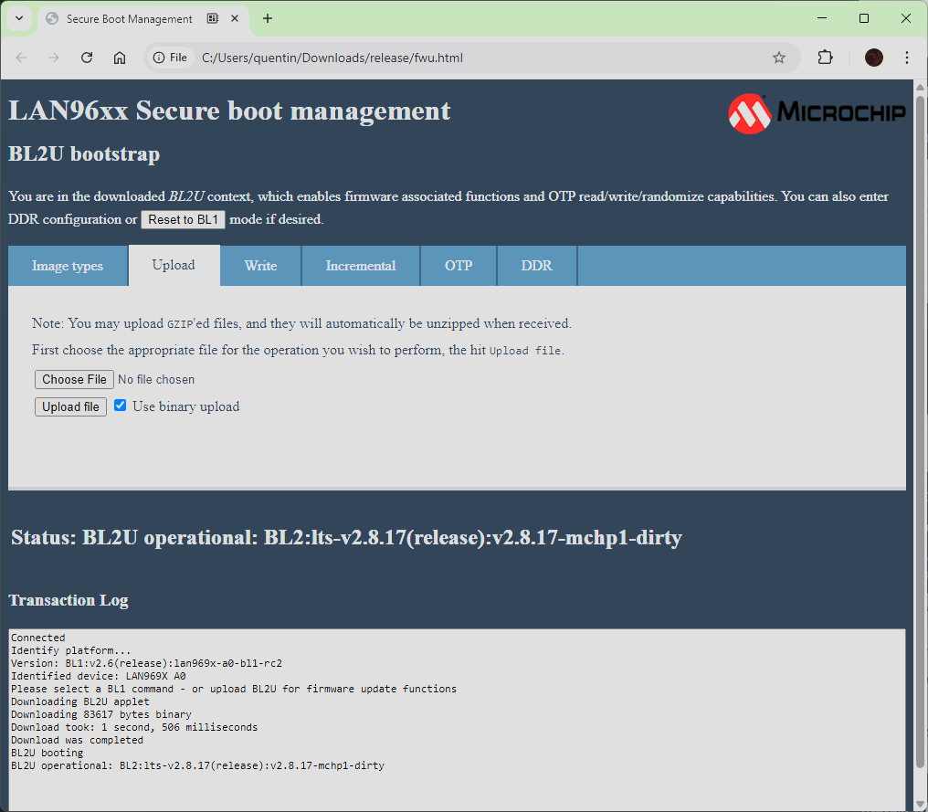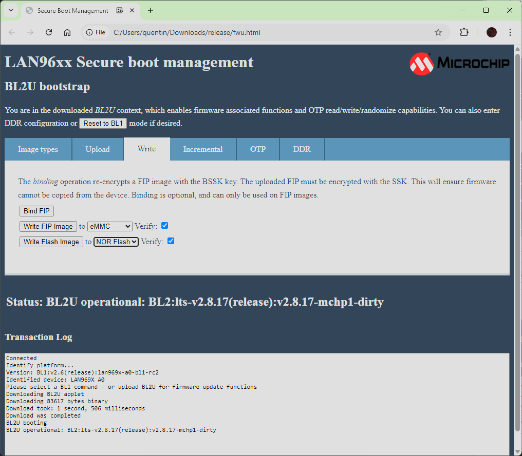 scripts/fwu/fwu.jsThis is another hacked on addition by microchip, It is a very nice tool, but I have no idea why they chose to place it in the tfa repo, but it is used to flash images onto lan969x-based boards over usb. I just had to update a line so I would detect the new build target I created.